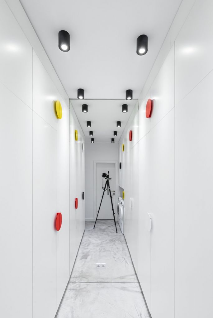 Câteva elemente în culori vii – măsuţele de cafea, scaunele sau prizele de căţărare din camera copilului – punctează amenajarea, aducând o notă de ludic.