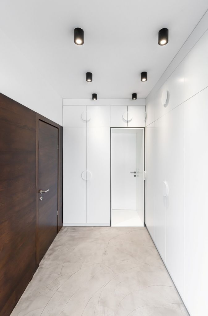 Realizat în întregime la comandă, mobilierul simplu şi elegant în nunaţe de brun închis pare să se desprindă de fundalul alb, creând o senzaţie de imponderabilitate. În contrast cu flexibilitatea zonei de zi, dormitorul matrimonial aduce o notă de dramatism, mai ales prin placarea în întregime cu lemn a peretelui din spatele patului care capătă, astfel, un aer monumental.