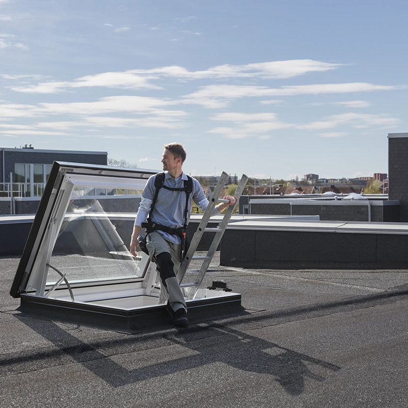 Redefinirea designului acoperișurilor plate: lansarea ferestrei VELUX Glass Rooflight Craftsman’s Electric Exit