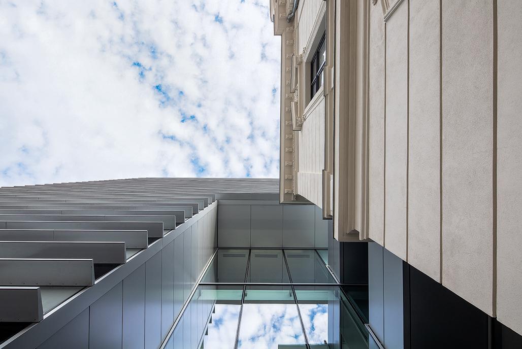 O prismă neutră și o casă neoclasică: un nou imobil de birouri