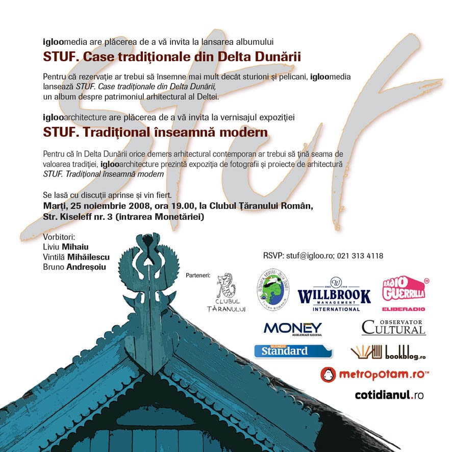 Marti, 25 noiembrie 2008, la ora 19.00 va avea loc lansarea albumului "Lansarea albumului "STUF. Case Traditionale din Delta Dunarii"