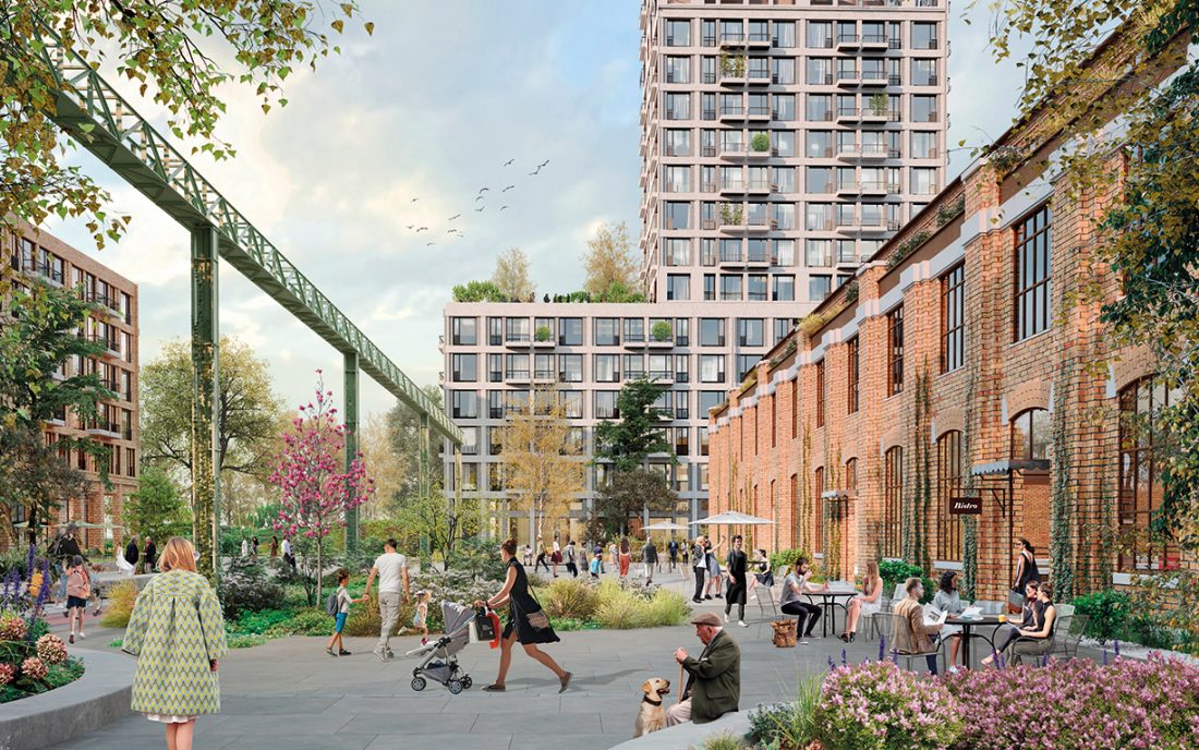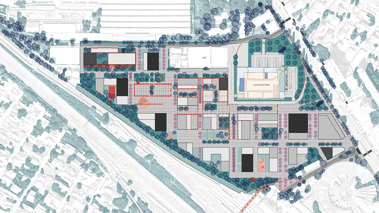 Masterplanul propune o structură de spații publice conectate cu orașul datorită unei țesături de străzi, piețe publice și grădini. Propunerea unui cartier pedestrial a presupus limitarea accesului mașinilor și construirea de parcări subterane, care să permită conexiuni principale la nivelul sitului. Astfel, spațiile publice susțin mobilitatea și sociabilitatea urbane. Am dezvoltat un limbaj urban pentru a putea contura o relație între sit și context. Integrează vechile structuri de cărămidă și oțel cu cele contemporane. Volumele joase propun un dialog strâns cu structurile existente, în timp ce cele înalte sunt plasate la bulevard, în partea sudică a căilor ferate. În mijlocul terenului sunt clădiri de înălțimi medii, care mediază cele două instanțe. Amplasarea lor a ținut cont și de condiții de însorire.