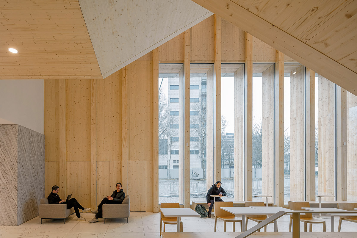 Amplasată în cadrul campusului universitar din Tilburg, clădirea proiectată de Powerhouse Company, cu un design durabil și circular, servește drept model pentru programele de arhitectură de acest tip, cu pretenții de sustenabilitate, fiind prima clădire universitară în întregime din lemn masiv din Europa și aproape neutră din punct de vedere energetic. De un rafinament atemporal, construită cu tehnologii de ultimă generație, Marga Klompé se armonizează perfect cu arhitectura modernistă a campusului.