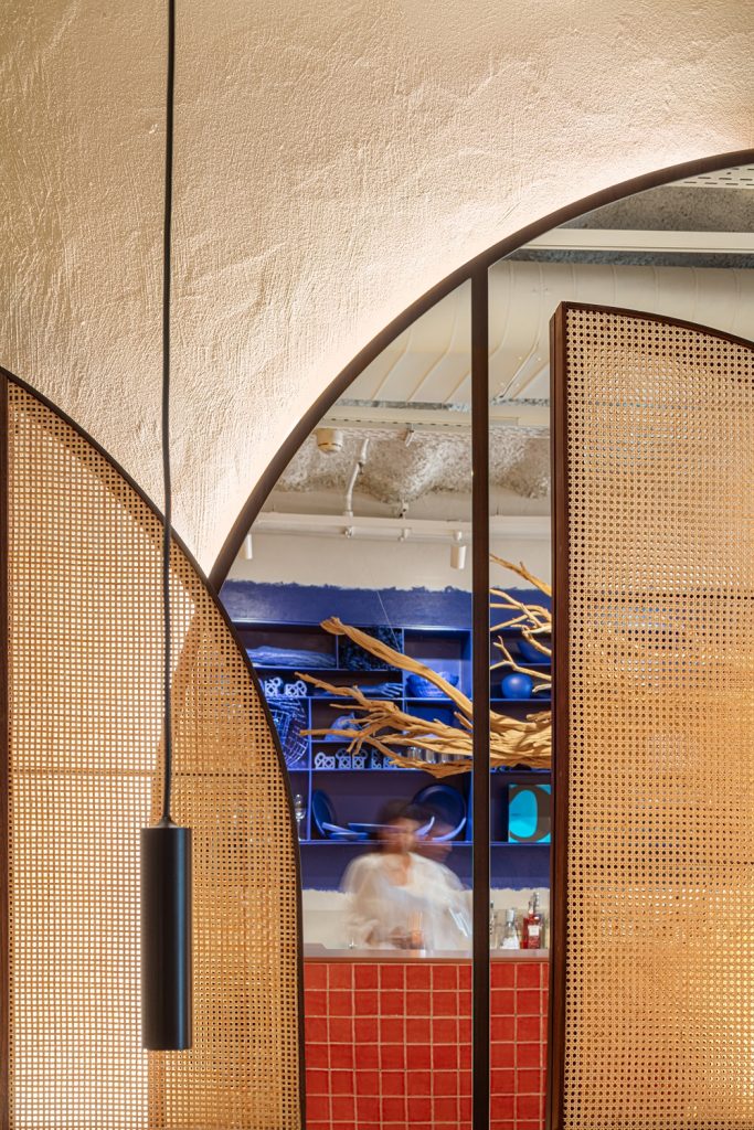 Situat într-un spațiu amplu, clasic din zona Eixample, care mai păstrează încă o impresionantă structură metalică, restaurantul deschide, așa cum și-au dorit arhitecții trei ferestre simbolice către Marea Mediterană: „una sculpturală, una picturală și alta textilă”. A rezultat astfel o colaborare cu artiști și meșteșugari locali și, de altfel, toate materialele și produsele utilizate în amenajare sunt 100% locale.