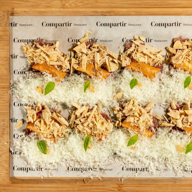 Formele organice, texturile naturale calde și artizanale, construiesc împreună cu oglinzile și cu cele două puncte care dau ritm și energie locului – barul și bucătăria – un cadru încântător în care se vor etala savorile bucătăriei. Acestea se învârt în jurul viziunii a celor trei chefi renumiți, Oriol Castro, Eduard Xatruch și Mateu Casañas, care se află la cea de-a treia aventură gastronomică împreună, după Compartir Cadaqués și Disfrutar Barcelona.