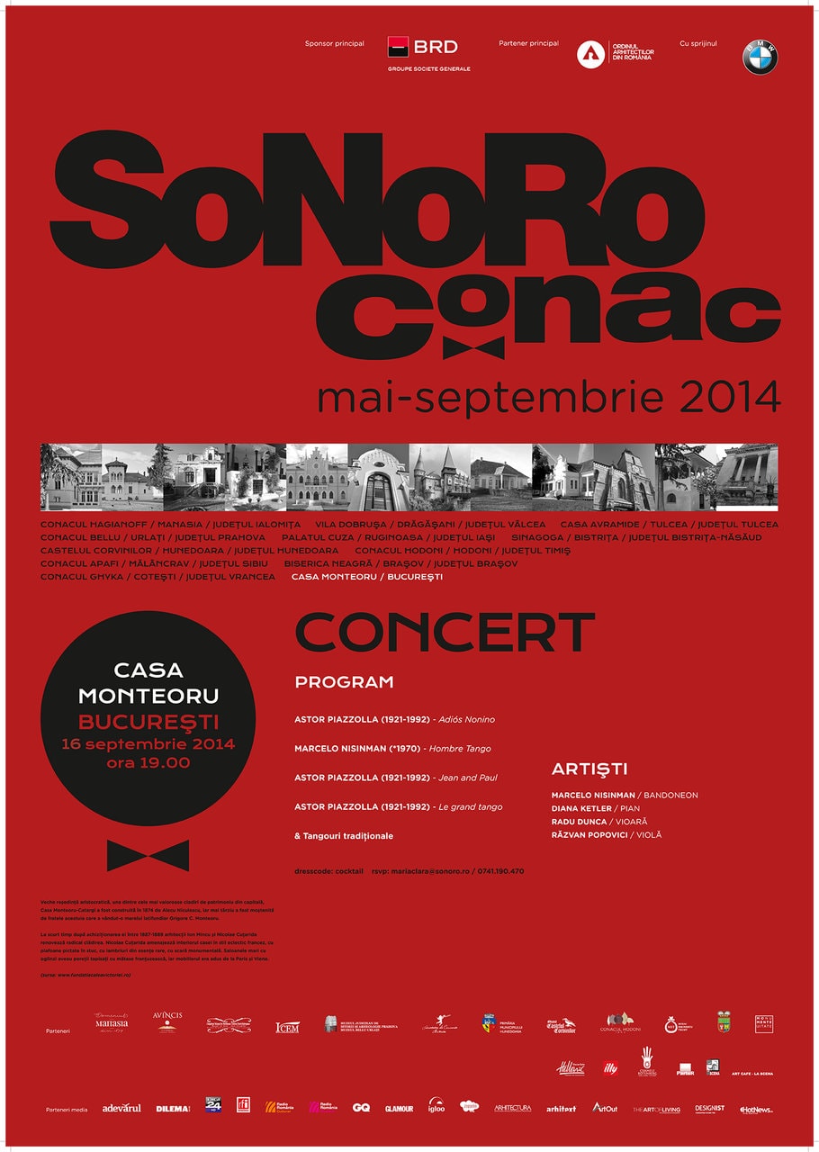Circuitul SoNoRo Conac 2014 se încheie cu o serie de 3 concerte de excepție în luna septembrie. Iubitorii de muzică de cameră își dau întâlnire la Conacul Ghyka din Cotești pe 13 septembrie, la Biserica Neagră din Brașov pe 14 septembrie și la Casa Monteoru din București pe 16 septembrie.