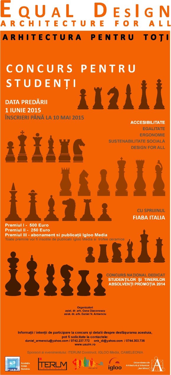 Universitatea de Arhitectură şi Urbanism „Ion Mincu” şi Asociaţia FIABA Italia – România organizează concursul pentru studenţi „Arhitectura pentru toţi”. Concursul este deschis studenţilor şi absolvenţilor din promoţia 2014, de la facultăţile de arhitectură, urbanism, arhitectură de interior şi design din toată ţara.