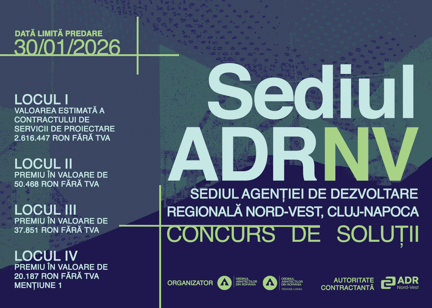 Ordinul Arhitecților din România (OAR), cu sprijinul Filialei Teritoriale Transilvania a OAR, alături de Autoritatea Contractantă – Agenția de Dezvoltare Regională Nord-Vest anunță oficial lansarea Concursului de Soluții „Sediul Agenției de Dezvoltare Regională Nord-Vest, Cluj-Napoca”