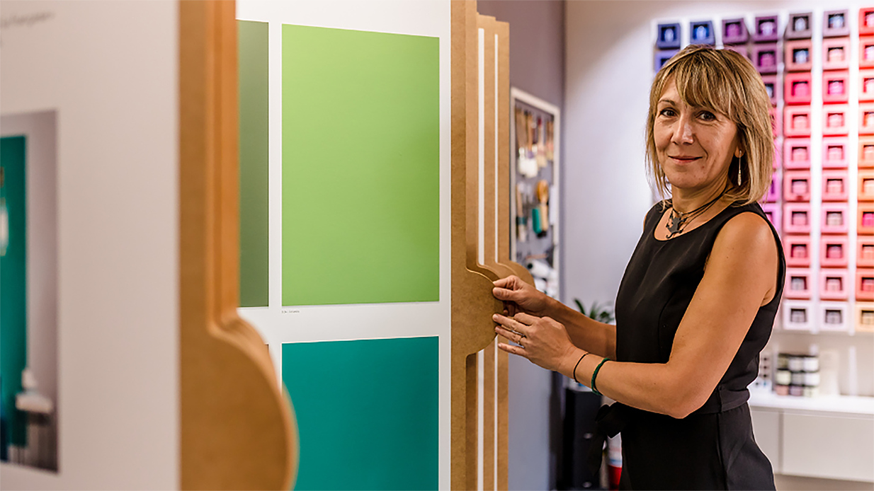 Facilitarea alegerii este esențială, culorile având intensități și subtonuri ce pot varia foarte mult. Punem la dispoziția clienților experiența noastră și două tipuri de instrumente foarte eficiente în selectarea nuanțelor: cartoane A4 si eșantioane de 100 ml de vopsea. Cartoanele A4 vopsite permit compararea culorilor pe suprafețe suficient de mari pentru a alege subtonul și tonul culorii, iar eșantioanele de 100 ml permit vopsirea acasă a unei suprafețe de cca 1 m, și alegerea culorii în condițiile proprii de lumină și contaminare.