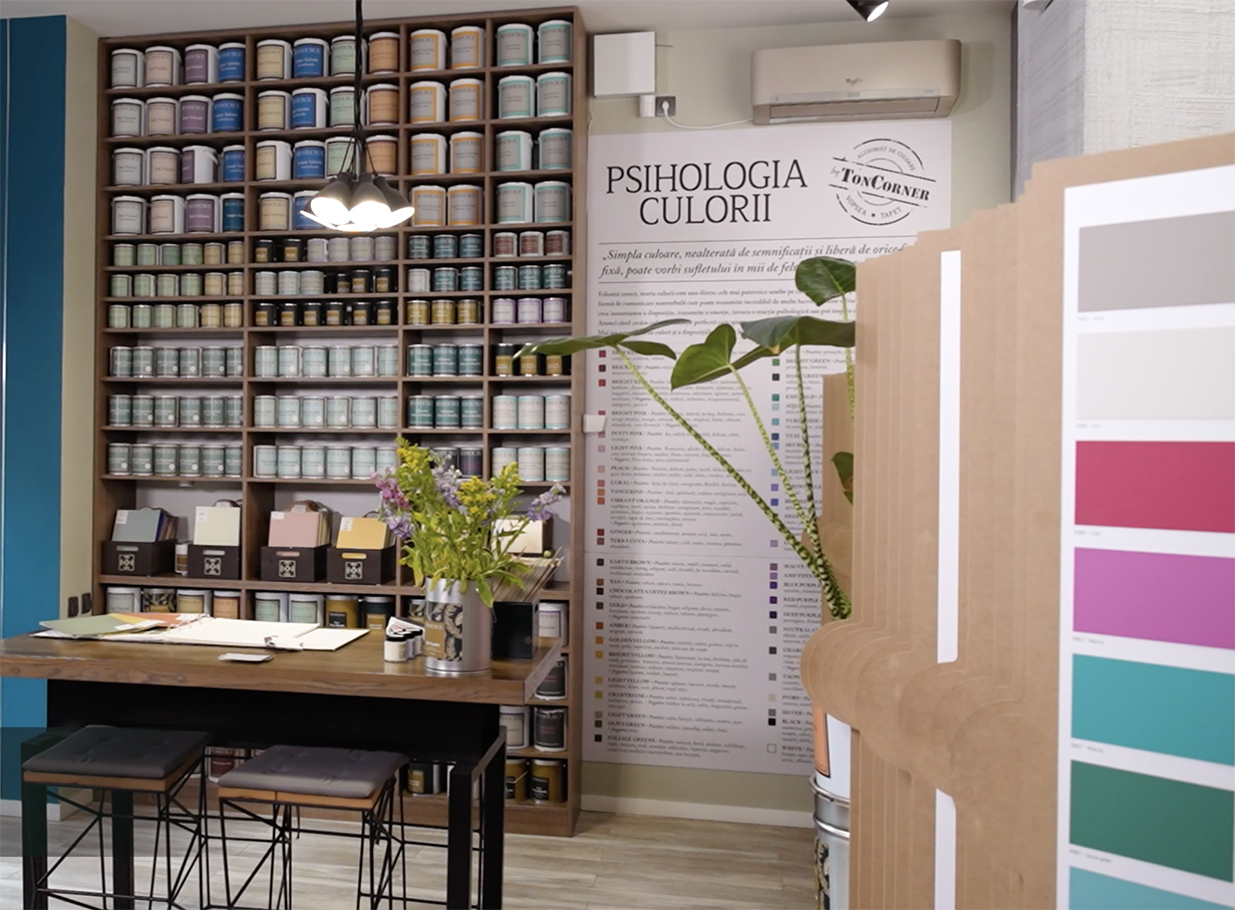 În afară de culoare, serviciul cromatic este complementar și esențial în experiența de cumpărare a clienților noștri. Iată ce ne spune Liana Leriu, proprietar TonCorner: „Când propunem o culoare, ținem cont, în primul rând, de emoția care se dorește a fi creată, de stilul decorativ, luăm în calcul calitatea și cantitatea luminii, ținem cont de forma camerei și de culorile elementelor fixe, dar mai ales avem în vedere personalitatea locuitorului și a locuinței.”