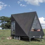 O structură mobilă, un design compact, minimalist, pe care îl poți așeza oriunde. O „micro-casă” pe roți proiectată în liniile unui iconic plan A de către australienii de la Studio Edwards, cabina este înve­lită într-un strat de cauciuc negru, integrân­du-se astfel fără efort în cele mai diverse medii. Estetica geometrică a cabinei, cu ferestre de dimensiuni și forme diferite, propune, în interior, un spațiu funcțional și intim bazat pe naturalețea și robustețea lemnului. Utilizarea materialelor naturale se înscrie în direcția eficienței pe care o susține proiectul Base Cabin.