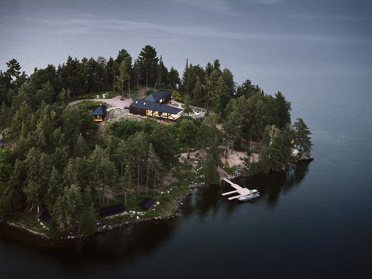 Sustenabilitatea a constituit principala prioritate în proiectarea acestui refugiu familial amplasat pe o mică insulă din provincia Ontario, Canada. Cu emisii zero și situat în afara rețelelor de electricitate și de apă, ansamblul este format din patru volume tip pavilioane, atent echilibrate pentru a avea un impact minim asupra solului, și coexistă în armonie cu natura înconjurătoare.