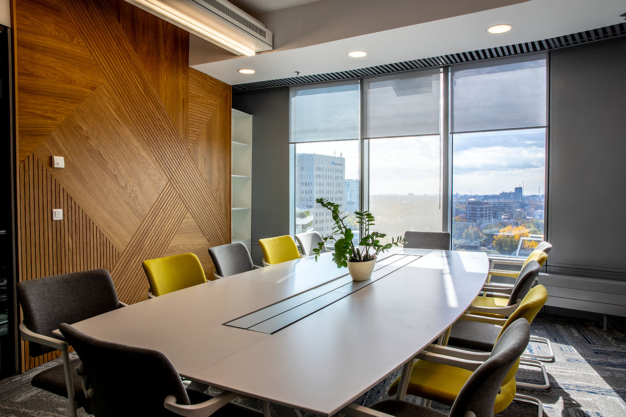 PROIECT: Birouri RPHI; ADRESA: Sky Tower, Calea Floreasca, nr. 246C, etaj 12, București; SUPRAFAȚA: 350 mp; AMENAJARE DE INTERIOR: Workspace Studio; FINALIZAT: 2022