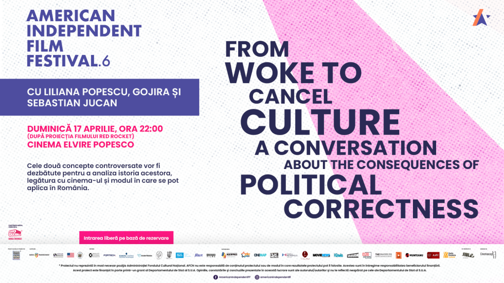 AIFF înseamnă pasiune, pasiune pentru cinema, dar şi pentru schimbul de idei şi pentru provocările intelectuale. Filmele din program dau de gândit şi invită la discuţii aprinse. Din tradiţia festivalui fac parte şi mult dezbătutele Open Talks. La această ediţie abordăm o temă fierbinte şi controversată: De la fenomenul Woke la Cancel Culture – O conversaţie despre consecinţele corectitudinii politice. Cele două concepte vor fi analizate prin prisma istoriei şi evoluţiei lor, dar şi a felului în care se regăsesc în societatea românească. Vom dezbate dacă sau cum influenţează acestea cinematografia modernă şi, în special, pe cea autohtonă.
