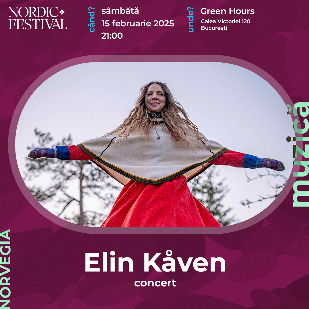 Elin Kåven este o solistă și compozitoare cunoscută pentru capacitatea sa de a împleti mitologia și muzica din cultura indigenă sami. De peste 20 de ani, ea este o voce importantă în muzica sami prin numeroasele sale proiecte – întâi ca artist solo, prin patru albume de folk-pop arctic, și mai apoi prin duo-ul Elin & The Woods sau formația Róhta. Concertul de la București va îmbina instrumentele indigene cu elemente electronice și joik – o veche de formă de muzică vocală a poporului sami, rezultând într-un pop ambiental care ne va face să visăm la natură.