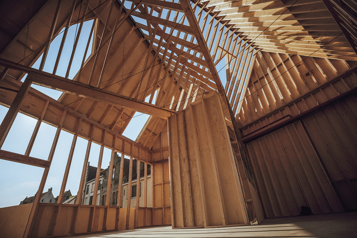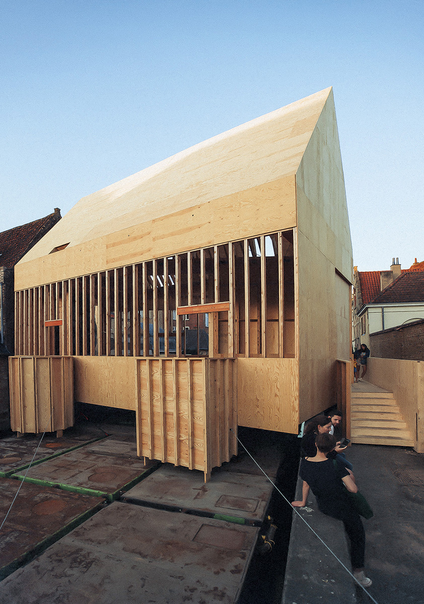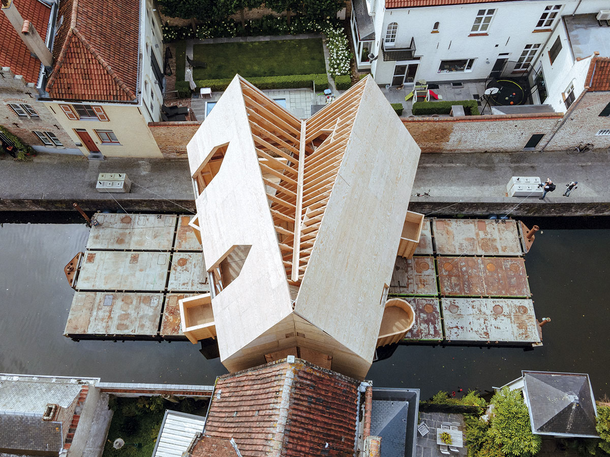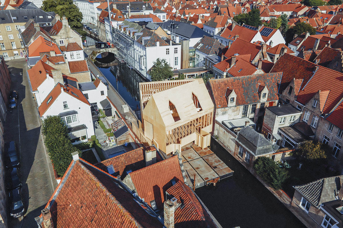 Oraşul belgian Bruges, al cărui centru istoric este declarat patrimoniu UNESCO, a găzduit în 2021 ultima ediţie a Trienalei sale de arhitectură şi artă contemporană. Evenimentul a pus în discuţie dimensiunile ascunse ale spaţiului urban, participanţii fiind invitaţi să vadă dincolo de iconicele faţade medievale şi să descopere, pe de o parte, relaţia dintre edificiile istorice şi viaţa contemporană şi, pe de altă parte, toate conotaţiile posibile ale temei Trienalei, „ʺTraumA”. Studioul de arhitectură PARA Projects a răspuns creând un pavilion care, de la distanţă, pare a oglindi forma şi scara uneia dintre construcţiile medievale amplasate de-a lungul unui canal.