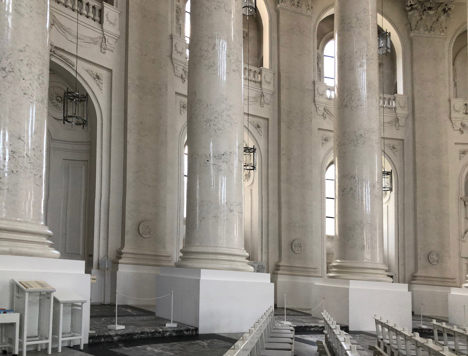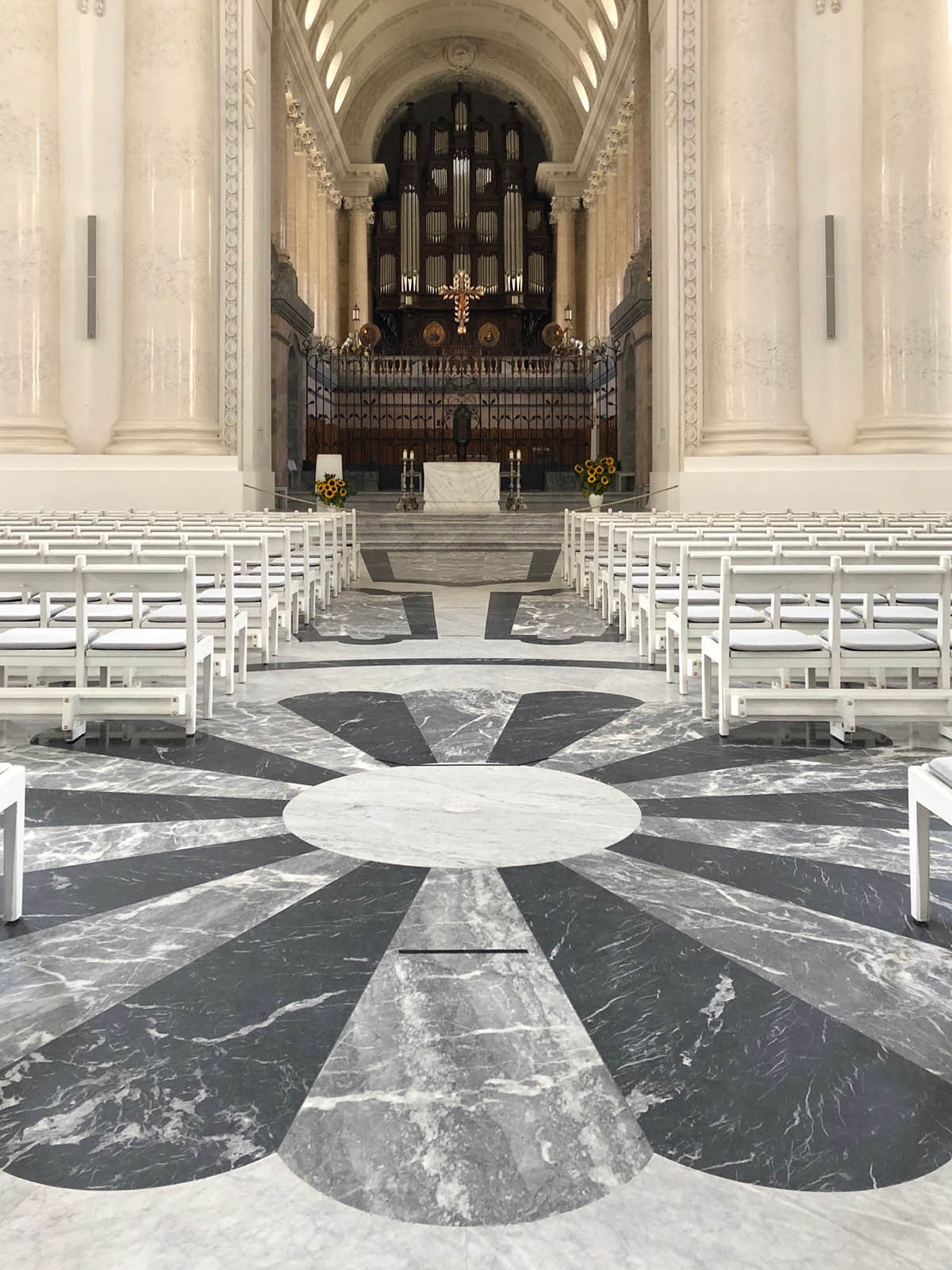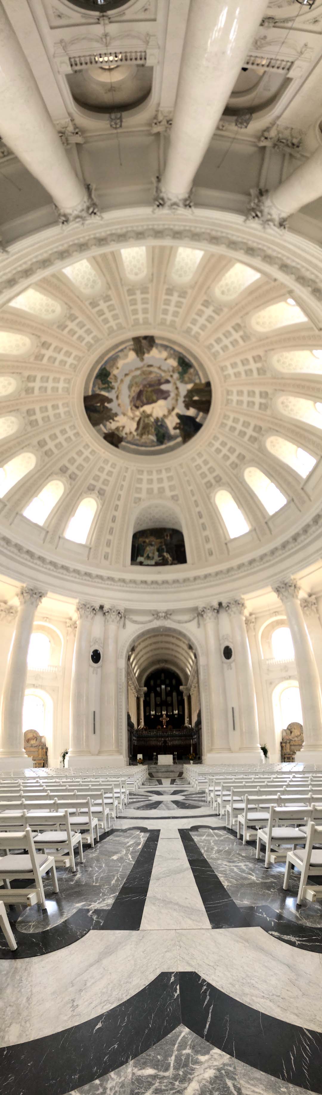 A doua zi, sentimentul s-a intensificat. Sub căldura neobișnuită din iulie, viața din orășelul Sankt Blasien pulsa surprinzător de ritmic. „Hai să vizităm Domul, este cel mai important lucru de văzut aici”, mi-a spus prietena care mă însoțea. Am privit de departe impunătoarea clădire și mi-a părut disproporționat de amplă în comparație cu mica urbe care îl înconjoară. Cupola măsoară 62 m înălțime și 36 m diametru. Inspirată de cea a Panteonului din Roma, este una dintre cele mai mari și spectaculoase din Europa. Arhitectul său ­ francezul Pierre Michel d’Ixnard ­ a ocupat, printre altele, funcția de maestru constructor al familiei princiare Hohenzollern-Hechingen. E suficient să aruncăm o privire la fațada monumentului ca să ne dăm seama de ce a rămas în istorie ca precursor al clasicismului.
