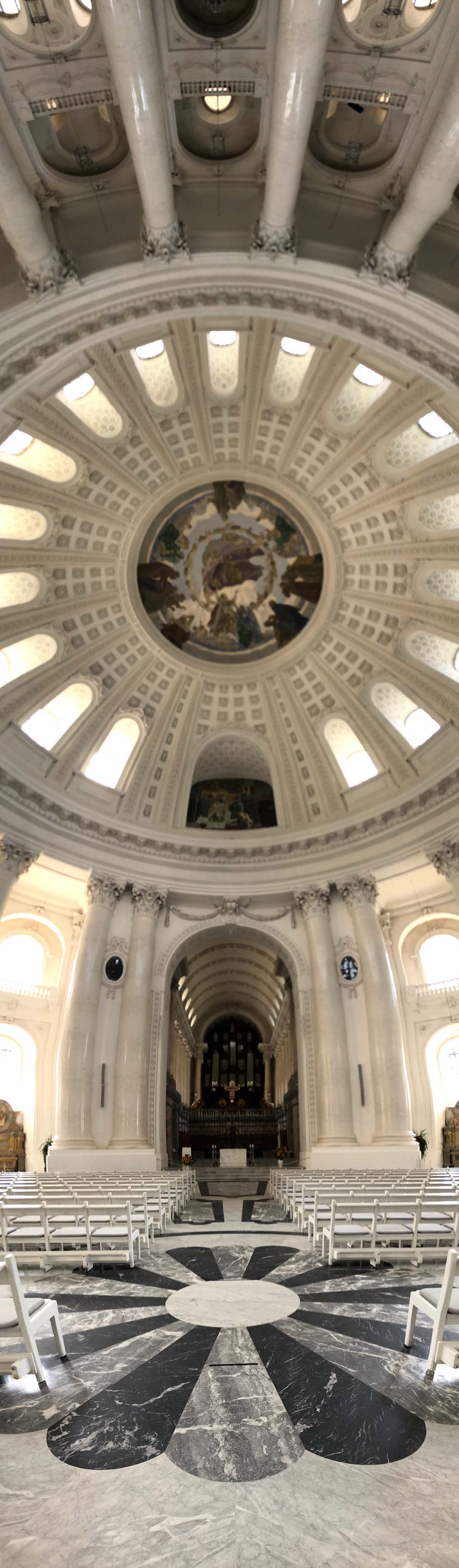 Domul a fost construit în 1783 pentru abația benedictină Sfântul Blasius, existentă aici încă din secolul al IX-lea. Dimensiunea reflectă semnificația socială, spirituală și economică a clerului la acea epocă. Dar viața a pulsat aici pe tot cursul istoriei: abația a fost secularizată, domul a rămas, iar clădirile adiacente au adăpostit, pe rând, o fabrică de mașini textile, una de arme și o filatură de bumbac. Incendii și avarii inerente trecerii timpului au impus o serie de renovări. Faptul că s-au împlinit nu doar cu măiestrie, ci și cu suflet se simte instantaneu în interior. Forma ocrotitor circulară, armonia proporțiilor și albul persistent, învăluitor, frapează cu drag ochiul și inima. Un mister al lăcașurilor sacre este optimul echilibru de lumină și structură. Fie ele biserici sau păduri, ne invită pe nesimțite la comuniune și își pun amprenta înălțătoare pe starea noastră de spirit. În Domul alb din Pădurea Neagră m-am recules cu smerenie și recunoștință în propria mea casă lăuntrică.