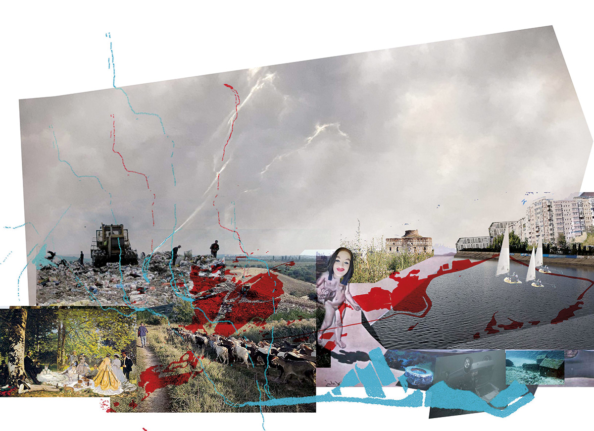 Pentru mine București este un colaj. Un colaj dadaist plin de contradicții, de nonsens, de revoltă. Acest colaj este evident oriental și fermecător, chiar dacă uneori ne prefacem că tindem spre ceva coerent, în stil occidental. Nu, București nu va fi o capitală occidentală niciodată, chiar dacă am descoperit locuri de parcare cu taxă anul trecut. Maidanul poate fi bordurat, omul tot va tinde în direcția în care „crede”. București crede, București nu știe, și asta este extrem de valoros. Bucureștenii nu cred în borduri, chiar dacă unii vor borduri. Bucureștiul este o capitală, o metropolă atractivă care șifonează zonele rurale din jur în timpul săptămânii și le irigă în weekend. Între mare și munte, între Orient și Occident, în această câmpie dementă denumită „Valahia”, „Bărăgan”, cu ciulinii ei (mă refer la Panait!) și stupine călătoare după flori de tei și de rapiță! Neam de păstori, iubitori de crap și de mititei! Oameni veseli care se strâng în jurul munților de pepeni de pe trotuar vara când mor de cald și caută o boltă de viță-de-vie… De la munții de pepeni la muntele Athos este distanță mică, numai să scapi de miliție, de șacali, și de iarnă! Iarna, când vine zăpada dintr-odată, noaptea, cu chiciură, cu crengi rupte, câini înghețați și copii veseli prin viscol. Copiii… cu cele mai periculoase locuri de joacă și mămici disperate prin spații verzi, căutând un tobogan sigur.