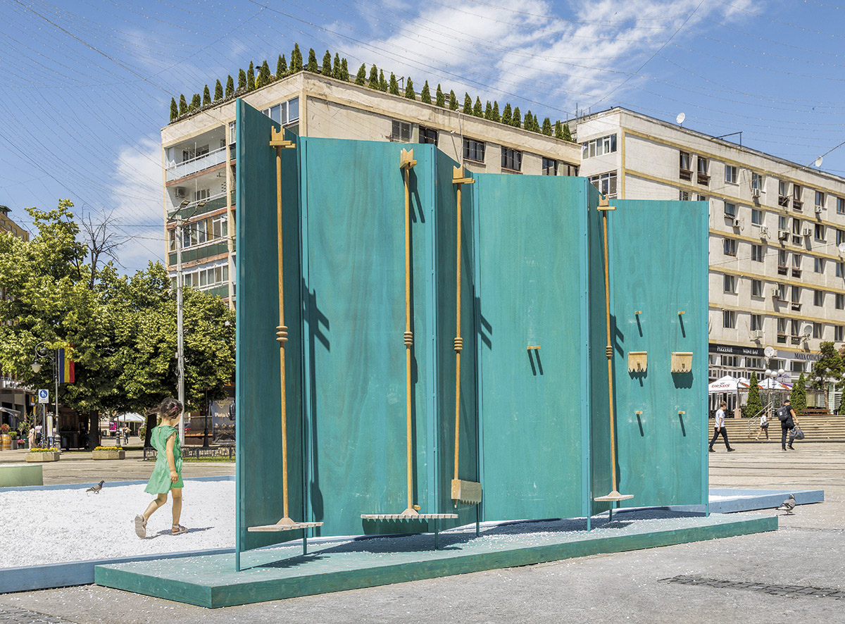 PROIECT: Drawing Theatre; AMPLASAMENT: Piața Unirii, Iași; ARHITECTURĂ: Studio Ossidiana; CURATORI: Anda Zota, Elena Viziteu Ionescu; EXECUȚIE: LemnArtis; FINALIZAT: 2024