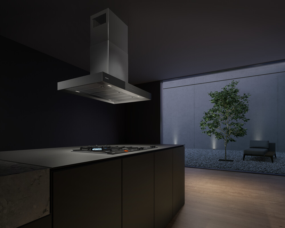 Sistemele de ventilație inteligente precum hotele Gaggenau din gama 400 pot fi programate pentru a regla viteza și nivelul de zgomot în funcție de fumul și aburul din bucătărie, cu accent pe o calitate cât mai bună a aerului filtrat. Acestea pot fi, de asemenea, controlate prin intermediul aplicației sau al comenzilor vocale. În plus, intensitatea luminilor hotei se adaptează la iluminatul general din bucătărie, accentuând într-un mod plăcut perimetrul de lucru.
