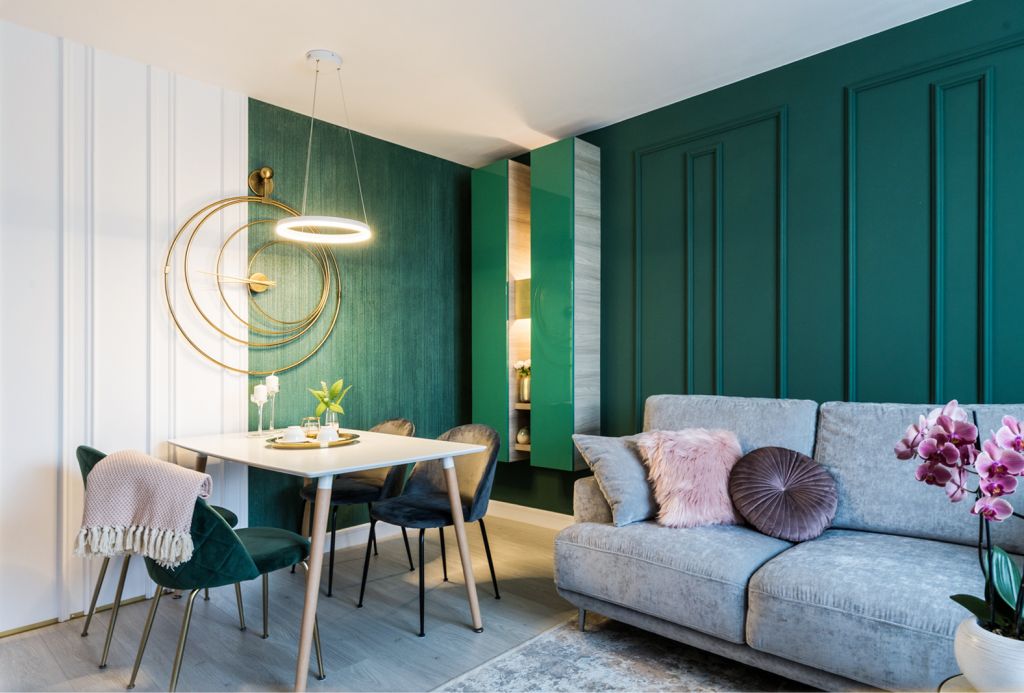 Nuanţele luxuriante de verde şi influenţele retro domină amenajarea acestui apartament cu două camere şi o suprafaţă de numai 48 mp din cartierul bucureştean Berceni. Arhitectul Adriana Popa a răspuns abil provocărilor funcţionale şi stilistice inerente spaţiilor mici şi a creat un ambient elegant şi confortabil, pe care proprietarii îl pot numi cu adevărat „acasă”.
