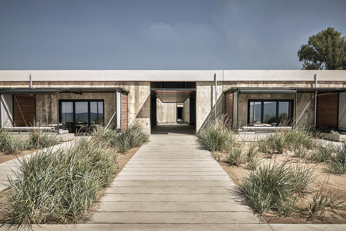 PROIECT: Dexamenes Seaside Hotel; AMPLASAMENT: Plaja Kourouta, Peloponez, Grecia; SUPRAFAȚA CONSTRUITĂ DESFĂȘURATĂ: 2 060 mp; ARHITECTURĂ: K-Studio; ECHIPA: Dimitris Karampatakis, Giorgos Mitrogiorgis, Dimitris Sotiropoulos, Marivenia Chiotopoulou, Giorgos Dimitrakopoulos, Christina Stamouli, Thomai Christopoulou; STRUCTURĂ: Panagiotis Zourntos; FINALIZAT: 2020