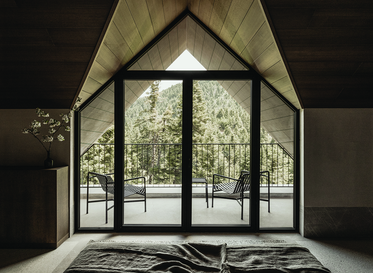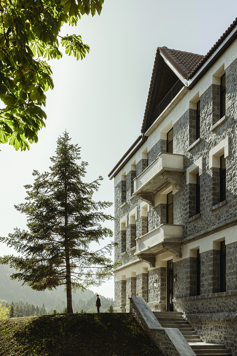 În urmă cu câțiva ani proprietatea a fost achiziționată de un antreprenor grec, în amintirea verilor petrecute aici în copilărie. Dorința lui a fost de a readuce locul la viață păstrând și redefinind contemporan câteva elemente de continuitate – ideea de ospitalitate, grija pentru corp, liniștea, confortul și regăsirea de sine. Toate acestea au fost atent transpuse în proiectul arhitecților de la K-Studio, care a implicat intervenții exterior-interior pe cât de masive, pe atât de delicate și de subtile, receptive la nuanțele istoriei spațiului. A rezultat un wellness retreat de cinci stele, situat la aproape 2000 m altitudine, în inima unei păduri de brazi – „un sanctuar atemporal”, celebrând omul, natura, timpul și arhitectura laolaltă.