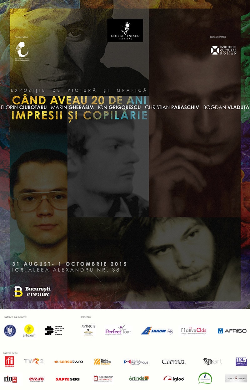 Evenimentul expozițional “Când aveau 20 de ani. Impresii și Copilărie” este organizat de Contemporanii și Institutul Cultural Român și face parte din Bucureștiul Creativ, care se desfășoară în cadrul Festivalului Internațional George Enescu. Expoziția poate fi vizitată în perioada 31 august – 01 octombrie 2015, de luni până vineri, între orele 10:00-18:00, la sediul ICR, str. Aleea Alexandru nr. 38, sector 1, București.
