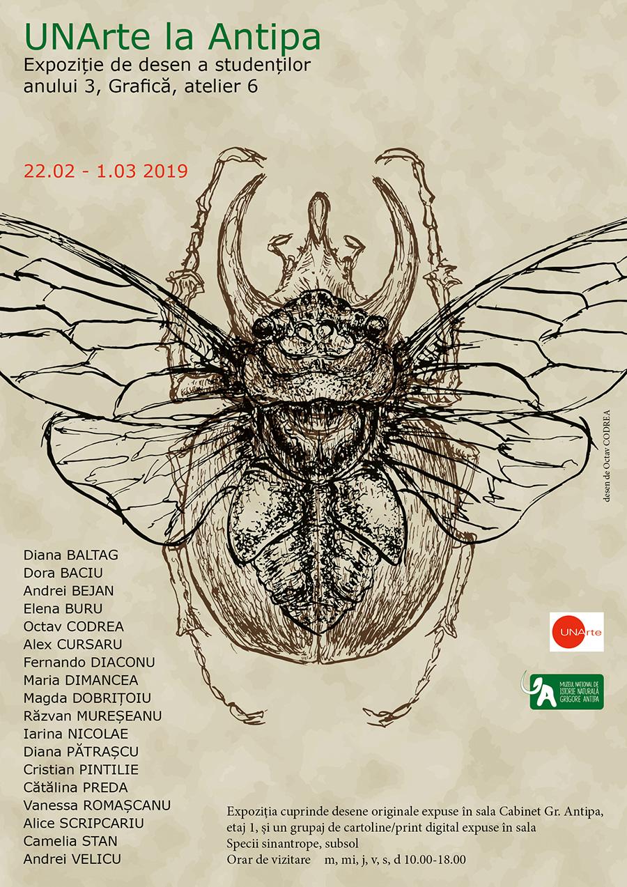 Studenții secției de grafică (clasa Conf. Univ. Dr. Stela Lie) au desenat de-a lungul timpului în cadrul Muzeului, folosind natura ca subiect. Lucrările lor sunt reunite într-o expoziție care este organizată în două secțiuni. În biblioteca din Sala Cabinet Gr. Antipa sunt prezentate desene orginale, în timp ce în Sala Specii Sinantrope este prezentată o instalație formată din numeroase reproduceri de desene, la scară redusă, care sugerează complexitatea și diversitatea naturii.
