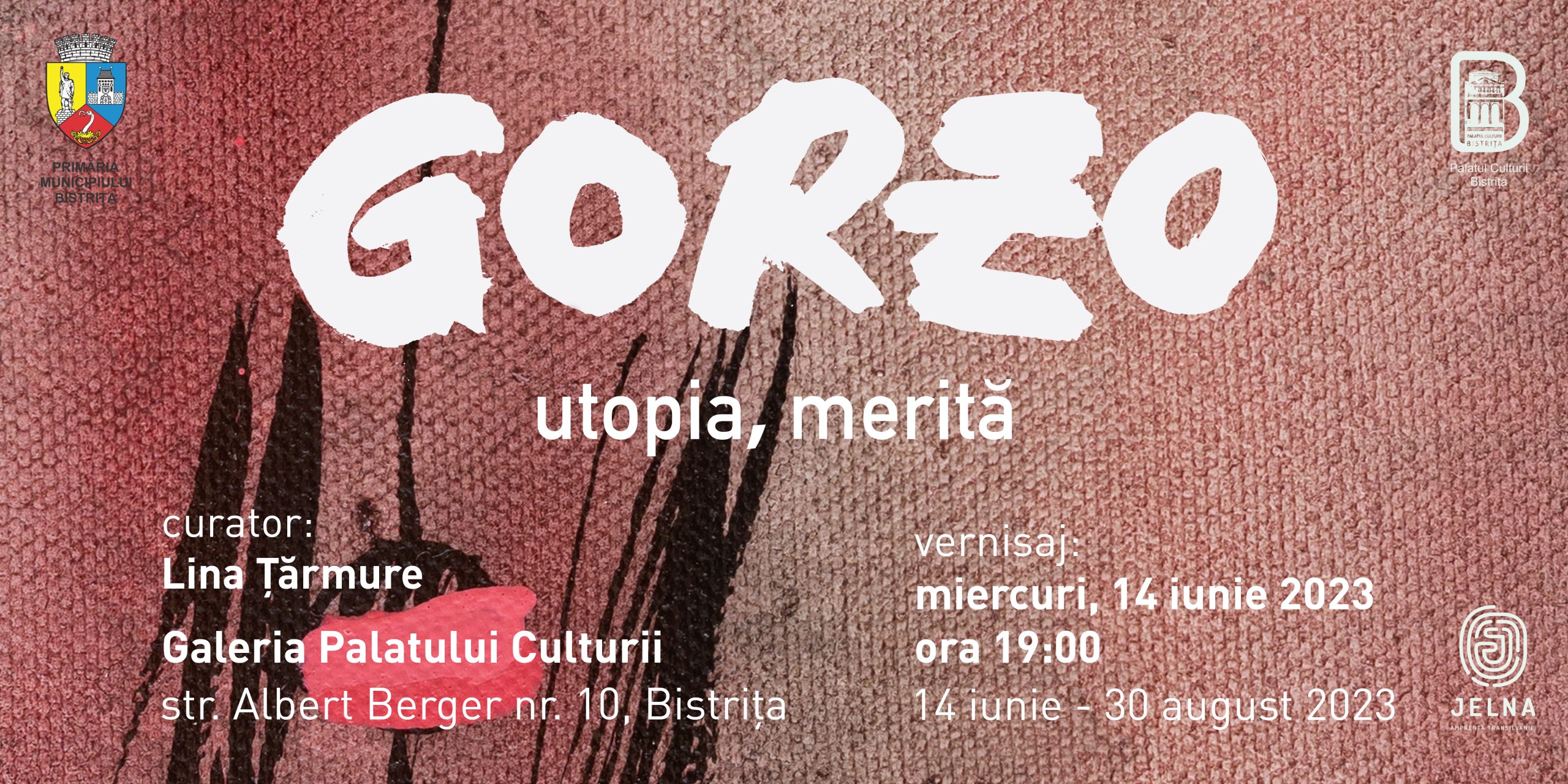 Centrul Cultural Municipal „George Coșbuc” vă invită la Galeria Palatului Culturii (str. Albert Berger nr. 10, Bistrița), miercuri, 14 iunie 2023, de la ora 19:00, la vernisajul expoziției „Utopia, merită”, semnată de Dumitru Gorzo și curatoriată de Lina Țărmure. Expoziția va putea fi vizitată până în 30 august 2023, de luni până vineri, între orele 9:00 și 18:00.