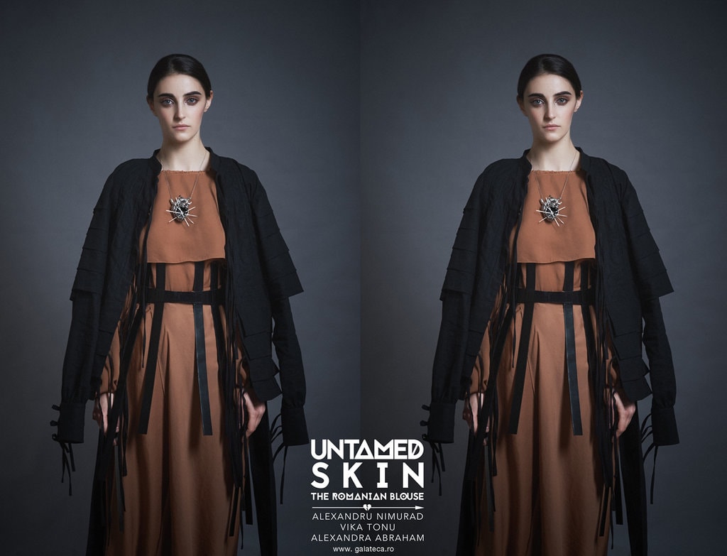 Pentru expoziţia de la Galateca, este inclusă şi o componentă “Behind the Scenes”, prin care se dezvăluie şi se împărtăşeşte cu publicul ce a implicat procesul creativ din spatele ţinutelor, bijuteriilor şi hamurilor: de la schiţe, prototipuri, matriţe, mulaje la unelte specifice şi mai multe surse inspiraţionale. “Untamed Skin – The Romanian Blouse” rămâne deschisă până pe 18 mai la Galateca, urmând să fie itinerată, cu sprijinul Institutelor Culturale Române din Bruxelles şi Berlin, la centrul de design Winkelhaal din Antwerp, între 29 mai-10 iunie, şi la galeria de artă şi design BraubachFive din Frankfurt, între 26-28 iunie. Intrare liberă.