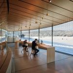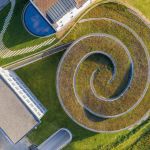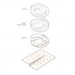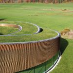 Un plan aerian al complexului ne dă justa legătură cu muzeul inițial și cu situl – o rotiță de ceas care șerpuiește viu între ochii vitrați larg deschiși și gazonul care acoperă asemenea unui covor verde spirala. Aceasta este conectată cu clădirea existentă a muzeului printr-un hol de acces.