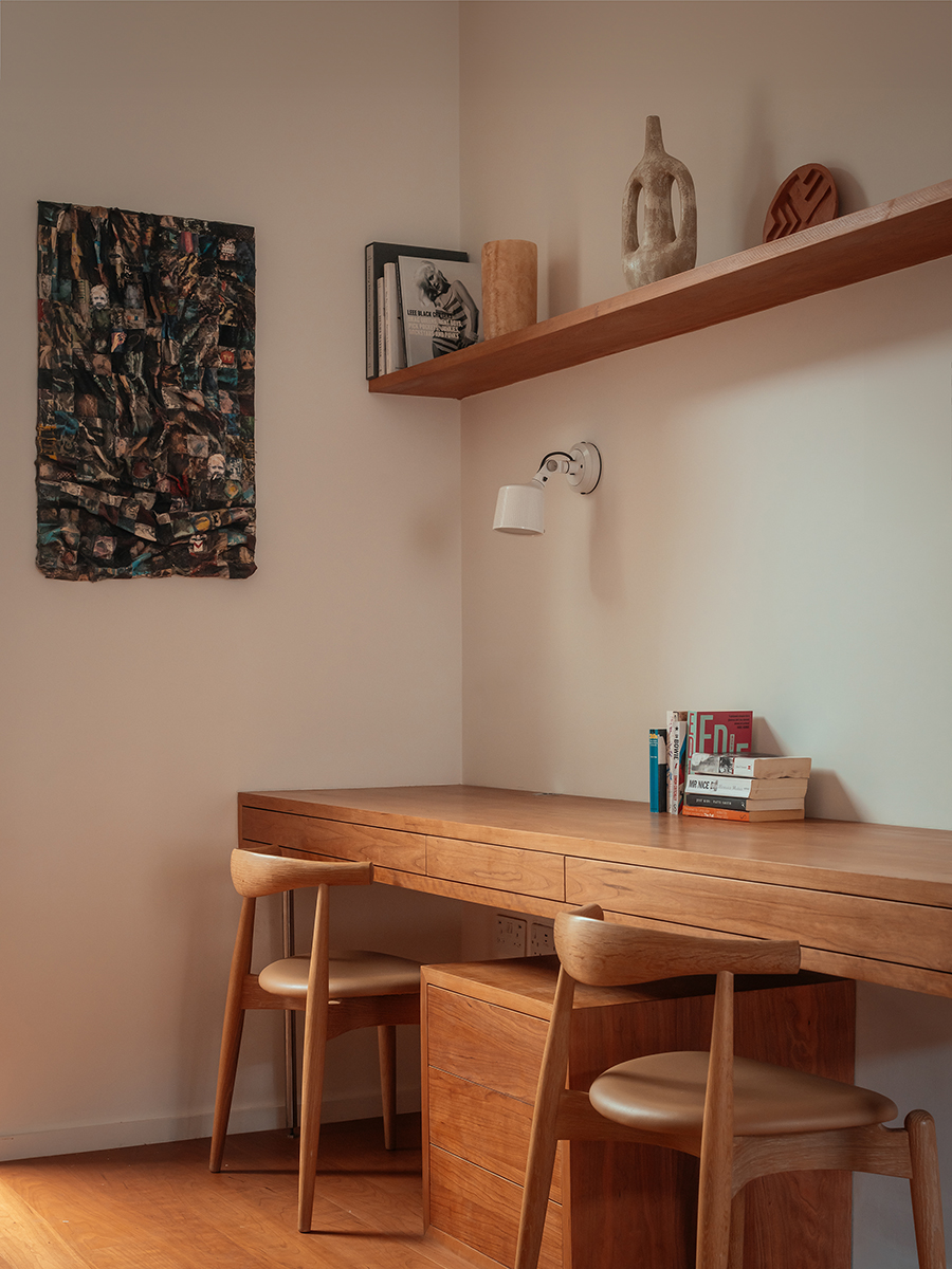 În ceea ce privește finisajele interioare, s-a mizat pe simplitate și funcționalitate, cu scopul de a pune în valoare piesele de mobilier existente și lucrările de artă, precum și de a asigura spațiu pentru echipamentul necesar proprietarilor, de profesie producători de muzică. În fiecare încăpere, contrastele subtile între materiale, texturi și culori mențin echilibrul vizual, creând un mediu seren și primitor.