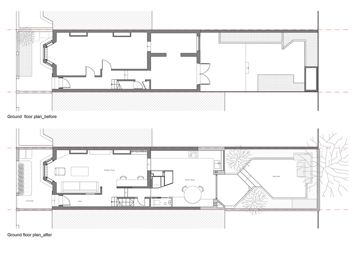 Având în vedere specificul arhitecturii londoneze, din ce în ce mai multe locuințe din capitala britanică necesită, în momentul de față, reconfigurări care să țină cont și de extensiile adăugate structurilor originale de-a lungul timpului. În cazul de față, acestea constau într-un spațiu tip loft, care a fost lăsat neschimbat din motive de cost, și într-o extensie a spațiului de living a cărei relație cu grădina lăsa de dorit. Astfel, principalele provocări ale proiectului au fost remodelarea celei de-a doua extensii cu scopul de a stabili un dialog continuu interior-exterior, și integrarea loft-ului în așa fel încât acesta să apară ca o parte integrantă a structurii principale.