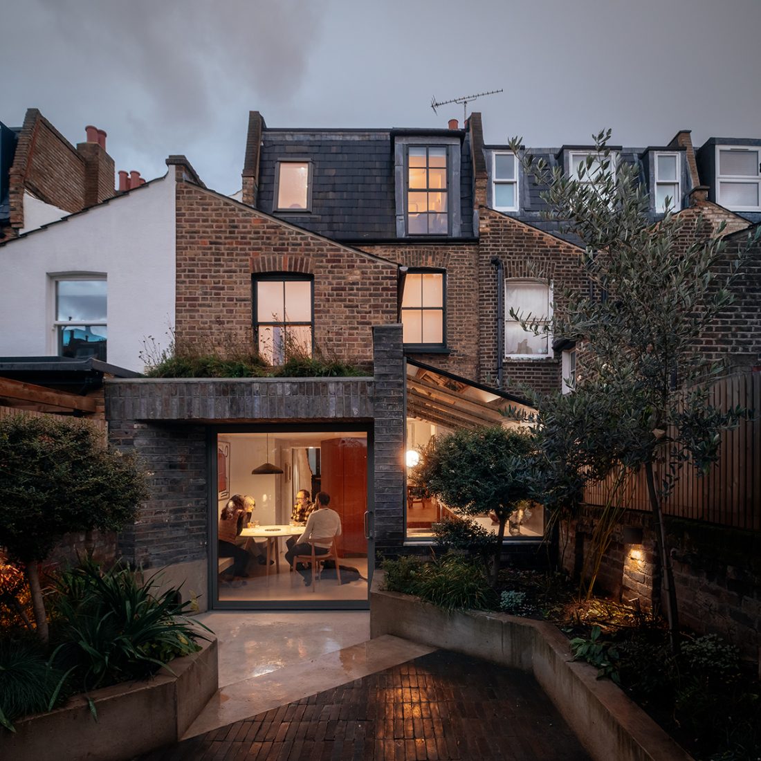 O familie londoneză cu cinci membri și-a dorit o reconfigurare a locuinței existente – inițial o construcție victoriană tipică – în spiritul favorizării stării de bine prin stabilirea unei conexiuni mai puternice cu grădina și optimizarea funcțiunilor interioare. Proiectul a inclus o serie de soluții sustenabile, precum instalarea unei pompe de cădură cu sursă de aer și a panourilor fotovoltaice sau simpla refolosire a materialelor existente. În plus, proprietarii și-au dorit ca schimbarea de look a casei să le reflecte pasiunea pentru artă și muzică, să încorporeze armonios și să pună în valoare mobilierul de designer și să fie prietenos cu animalele de companie.