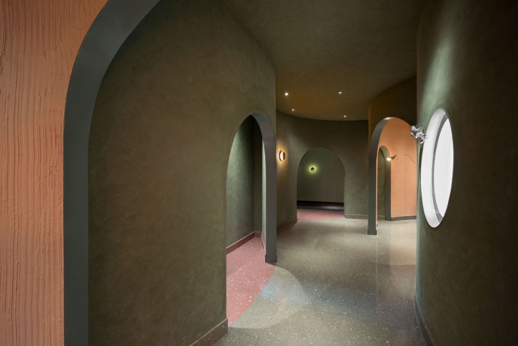 Mai departe, zona de aşteptare este inundată de o lumină diafană care, împreună cu instalaţiile tridimensionale, creează o atmosferă de mister, dar şi de relaxare, pentru ca timpul petrecut acolo să fie cât mai plăcut. Conform etichetei, vizitatorii sunt rugaţi să îşi schimbe pantofii înainte de a intra în camerele de tratament, iar spaţiul destinat acestei acţiuni conţine scaune curbate şi semi-închise, pentru a garanta intimitatea. Chiar şi aici, atmosfera creată este una primitoare şi captivantă, ce anticipează experienţa spa.