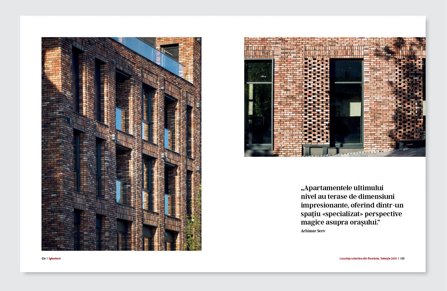 15 proiecte de locuințe colective de dimensiuni, abordări, expresii, intenții și rezolvări diferite alcătuiesc selecţia 2021 a noului album . De la (părți din) mari ansambluri rezidențiale la inserții urbane de mici dimensiuni proiectele reunite în sumar includ refaţadări şi reorganizări interioare, refuncționalizări sau chiar extinderi și amplificări ale unor clădiri existente. Diversitatea paletei ni s-a părut mereu importantă și este o condiție a relevanței unei cărți de arhitectură în general și despre locuirea colectivă în special.
