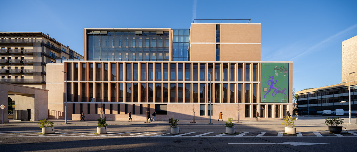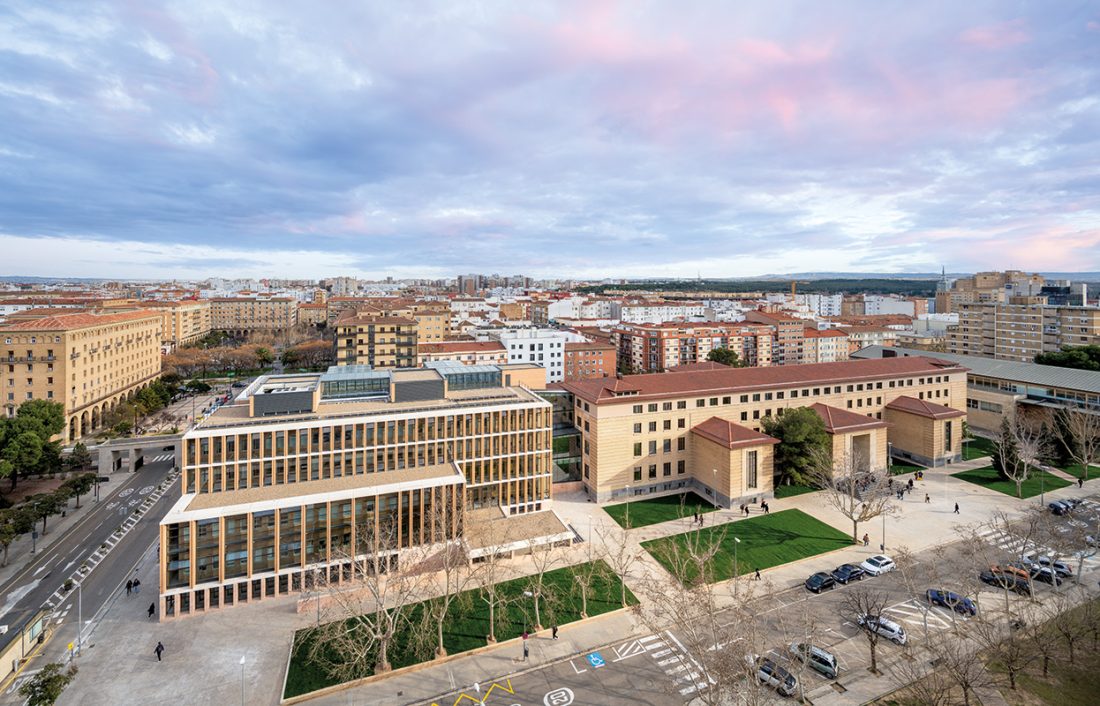 PROIECT: Facultatea de Filosofie și Litere a Universității din Zaragoza; AMPLASAMENT: Campusul universitar San Francisco, Zaragoza, Spania; SUPRAFAȚA CONSTRUITĂ DESFĂȘURATĂ: 22 096,68 mp; ARHITECTURĂ: Magén Arquitectos; FINALIZAT: 2021