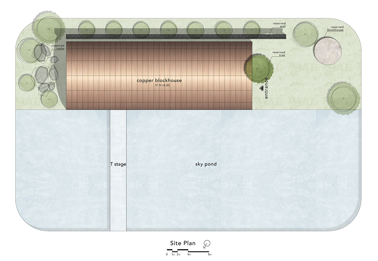 În 2021, arhitectul Yu Ting de la Wutopia Lab a fost invitat să proiecteze clădirea principală din cadrul unui parc dedicat industriilor creative. Atât numele de Copper Blockhouse, inspirat de adăpostul antiaerian existent pe sit, cât și porecla dată de arhitect structurii – Full Metal Jacket, titlul filmului regizat de Stanley Kubrick – evocă o atmosferă militară, însă proiectul a fost gândit ca o fortăreață a spiritului. Având posibilitatea de a găzdui multiple tipuri de funcțiuni și evenimente, noua clădire devine un loc de refugiu pentru omul contemporan, care găsește aici adăpost față de constrângerile lumii exterioare, într-un mediu dedicat introspecției și creativității – pe scurt, manifestărilor spiritului.