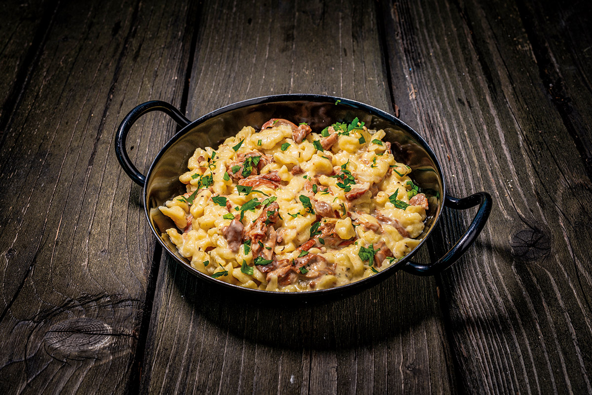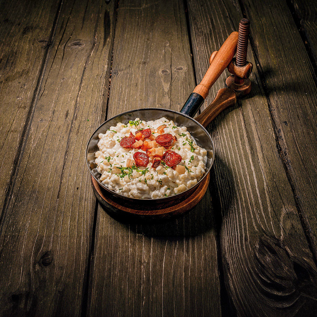 Alături de ciorba hribovița și podleasneac-ul din cartofi, aceasta este una dintre rețetele tradiționale care se poate încerca la Huta Slavia, unde se gătește bun și ca odinioară. Ingredientele sunt și ele ale locului: legume și fructe din familie și de la localnici, păstrăv din lacul propriu sau carne provenită de la crescătoria locală de porci. Revenind la acest important și esențial ingredient care a fost și este cartoful pentru slovaci, merită menționată și „Sărbătoarea Cartofului”, un eveniment anual care prilejuiește o bună ocazie de a savura plăcinta cu cartofi. O altă parte frumoasă a poveștii aflate în desfășurare la Huta Slavia este că întreaga comunitate de slovaci este implicată într-un fel sau altul în ducerea mai departe a obiceiurilor și tradițiilor înaintașilor.