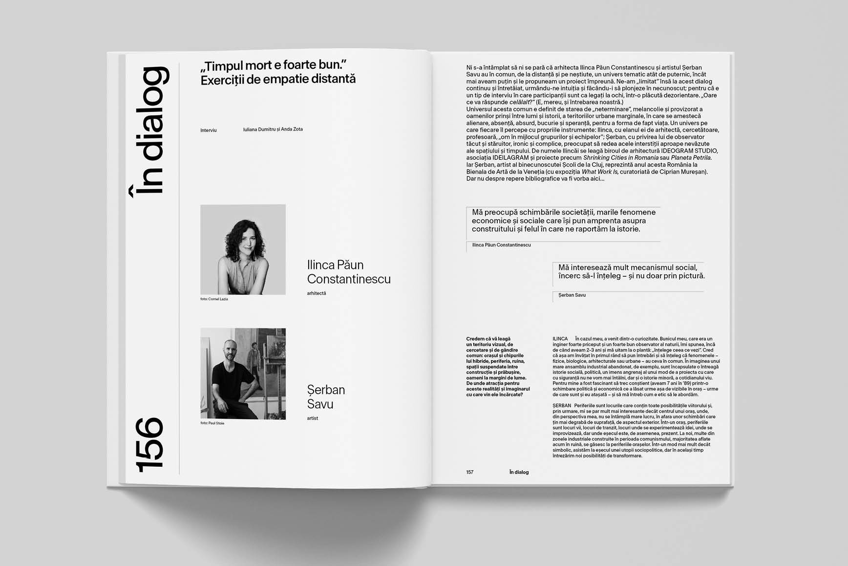 Rubrica În dialog aduce, ca de fiecare dată, două voci distincte și puternice în domeniile lor: arhitecta Ilinca Păun Constantinescu și artistul Șerban Savu – aduși laolaltă nu doar de intenția noastră jurnalistică, ci și de intuițiile lor creatoare care nu rămân niciodată desprinse de un interes autentic pentru oameni și viață.