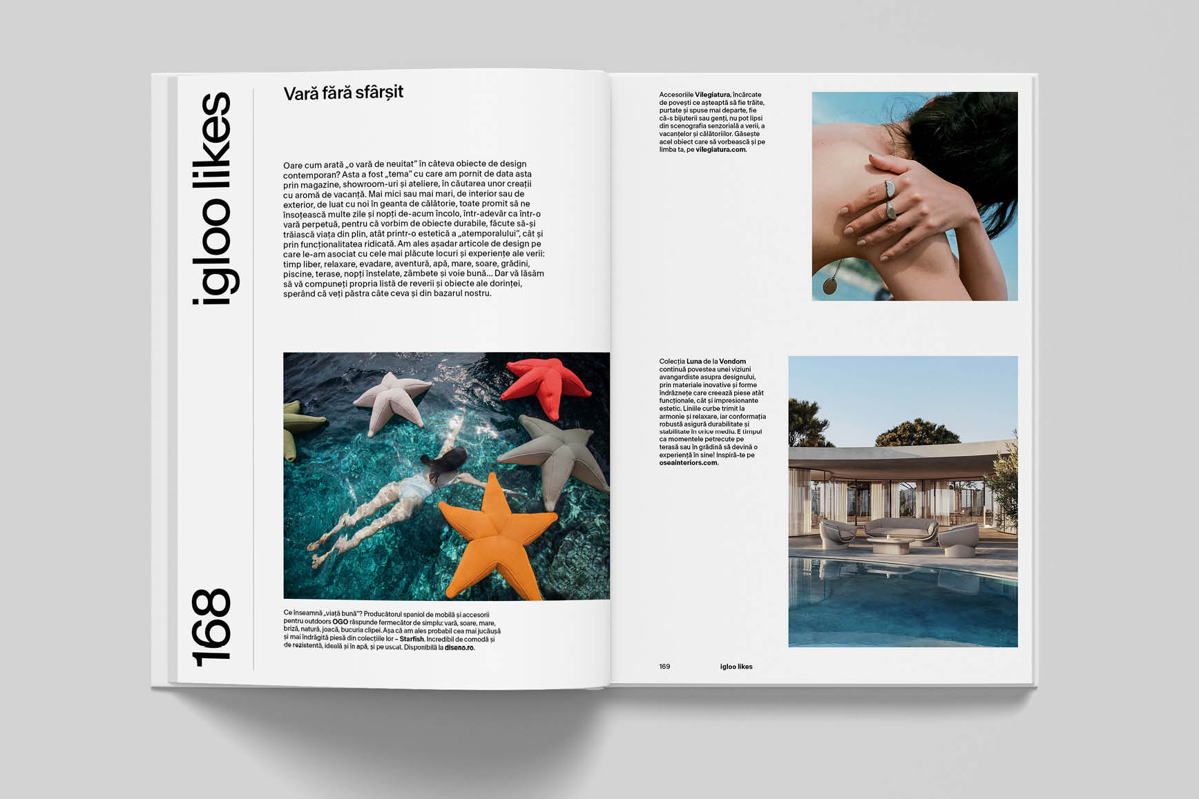 Vara ocupă rubrica igloo likes care face o colecție de obiecte de design contemporan potrivite pentru cadrul perfect al unei povești estivale și care, dincolo de funcționalitatea lor atemporală, poartă cu ele bucuriile verii: timp liber, terase, evadare, aventură, apă, soare, grădini…
