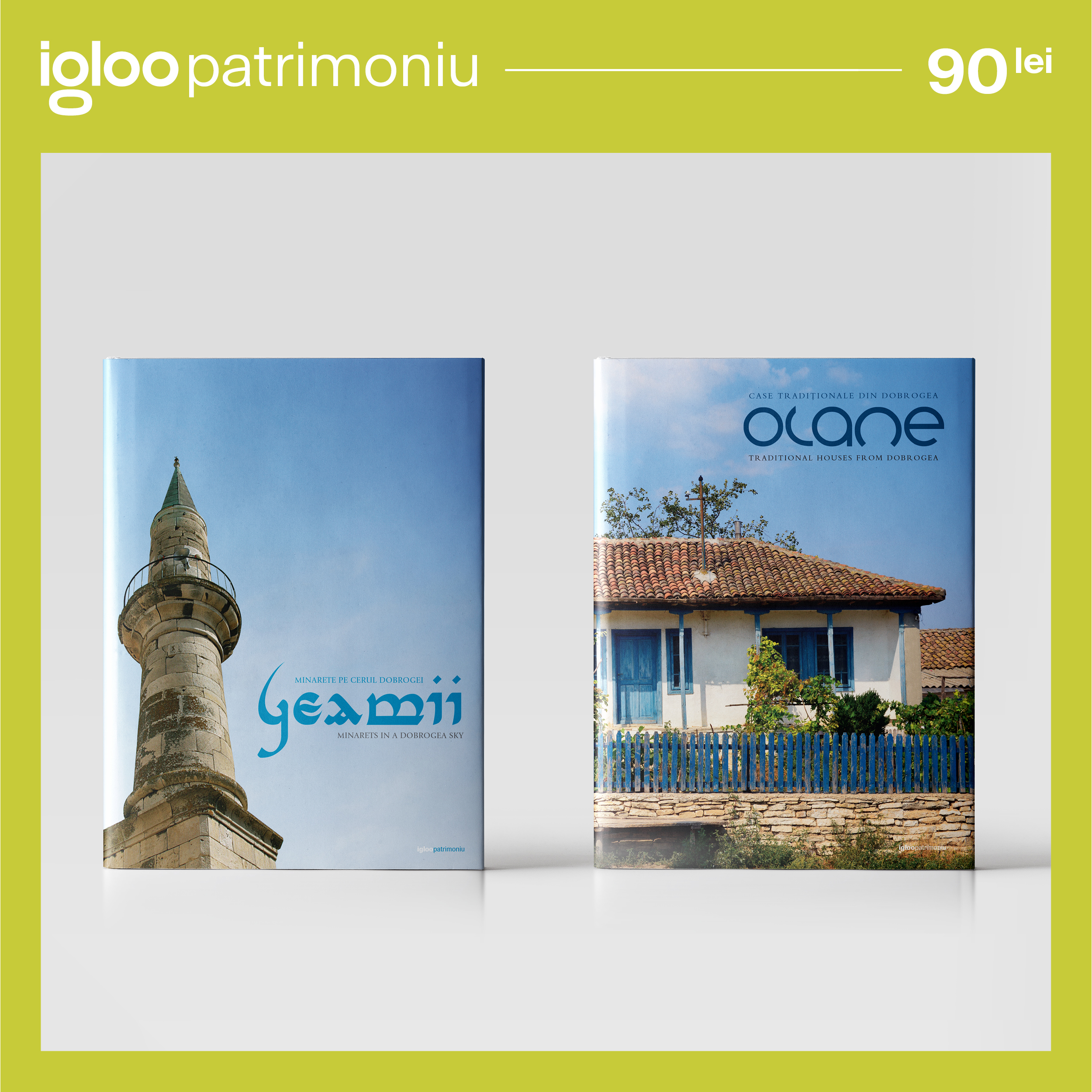 Construit ca un volum ce încearcă să surprindă ceea ce a mai rămas din arhitectura tradiţională a zonei, albumul igloopatrimoniu Olane. Case tradiționale din Dobrogea îşi propune, în mod explicit să (re)trezească interesul pentru casa tradiţională din Dobrogea şi, de ce nu, să constituie o bază de imagini pentru viitoare politici de conservare. Fie că este vorba despre gospodării înstărite sau despre locuinţe în plină ruină, toate imaginile din album cartografiază specificul acestui spaţiu confruntat în ultimii ani cu invazia materialelor contemporane artificiale şi a formelor care au migrat din arhitectura oricum îndoielnică a oraşelor. Ne propunem ca acest album să ofere o perspectivă bine documentată asupra arhitecturii tradiţionale a Dobrogei, promovând specificul locului, precum şi responsabilitatea şi nevoia de implicare în actul de arhitectură.