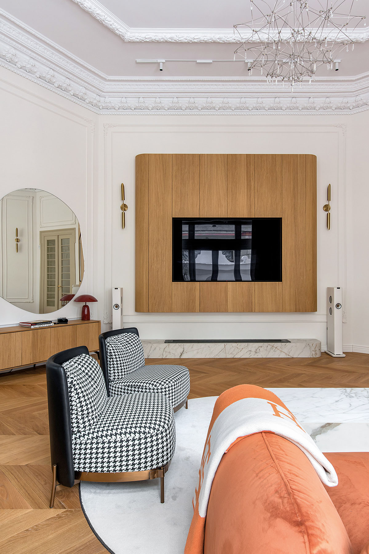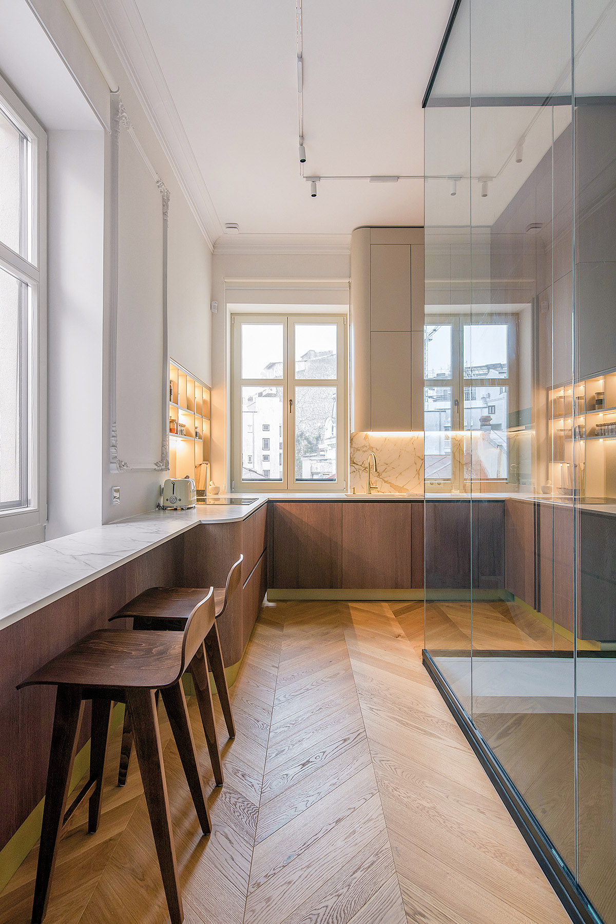 Amplasat într-o vilă neoclasică de la 1927 din centrul Bucureștiului, apartamentul pe care urmează să vi-l prezentăm a fost remodelat pentru o locuire contemporană în miezul unui univers arhitectural cu un puternic caracter istoric, păstrat prin câteva elemente valoroase, atent restaurate: plafoane înalte, stucaturi, tâmplăria inițială din lemn, o scară monumentală, sculptată. Proiectul a fost nominalizat la recenta ediție a Anualei de Arhitectură, la secțiunea „Arhitectura amenajărilor interioare/amenajări rezidențiale”.