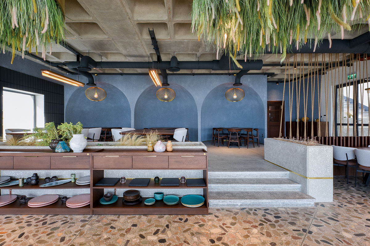 Privit din exterior, restaurantul apare asemenea unui monovolum simplu, care urmărește relieful, dar nu lasă să se întrevadă prea multe. De aceea și cu atât mai mult pășirea în Lotcă este un adevărat festin pentru ochi și mai apoi pentru simțuri. Două volume solide marchează coborârea în restaurant, care propune traversarea unor zone diferite având drept numitor comun un fundal auster pe care natura își face frumos de cap.