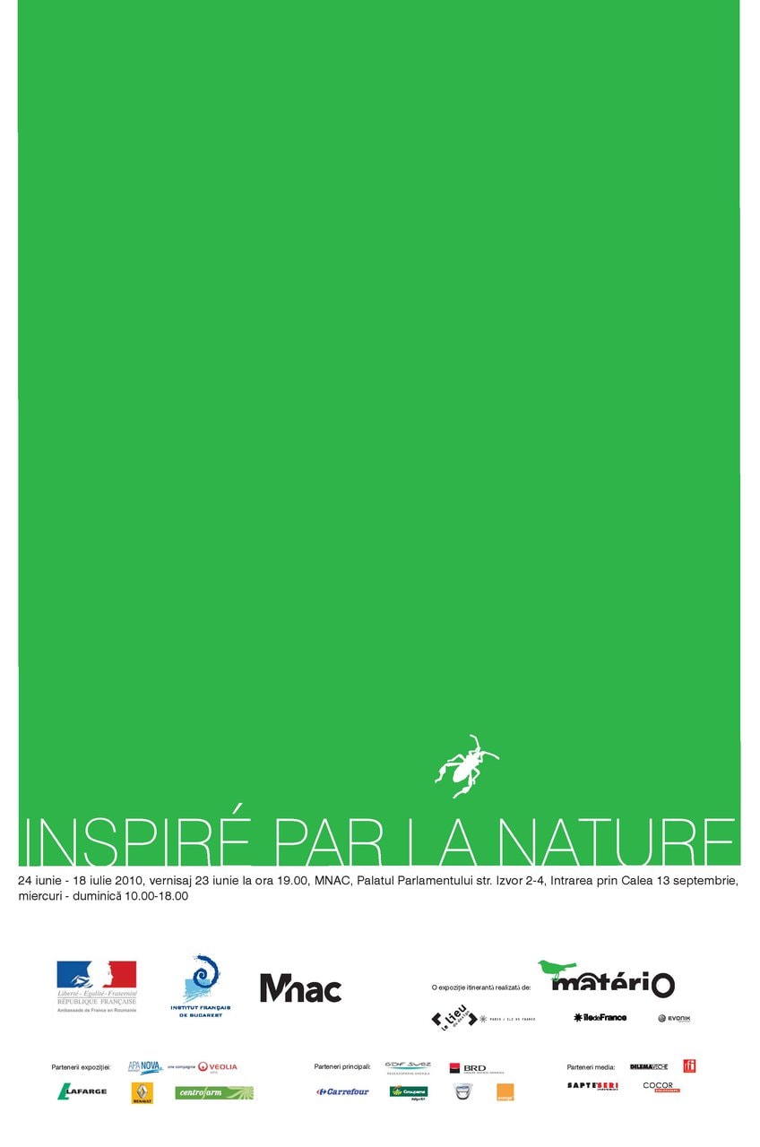 Miercuri, 23 iunie, de la ora 19:00, la MNAC are loc vernisajul expoziţiei MatériO/Inspiré par la nature, organizată în colaborare cu Institutul Francez din Bucureşti şi deschisă până pe 18 iulie 2010.