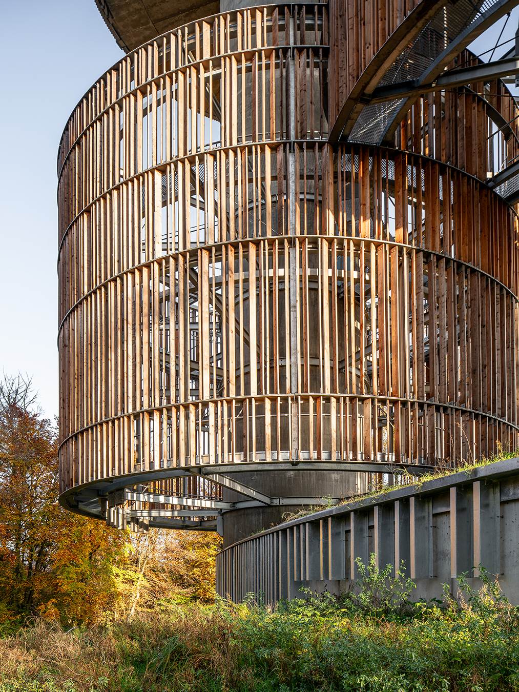 PROIECT: Adăpost pentru păsări și mamifere și turn de apă; AMPLASAMENT: Kirchberg, Luxemburg; SUPRAFAȚA: 1 620 mp; ARHITECTURĂ: Temperaturas Extremas Arquitectos + Adelino Magalhães Asociados; ECHIPA: Atxu Amann, Andrés Cánovas, Nicolás Maruri, Adelino Magalhaes, Joachim Kraft, Denis Facal, Pablo Sigüenza, Borja Aznar; CLIENT: Service Eaux, Ville de Luxembourg; FINALIZAT: 2024
