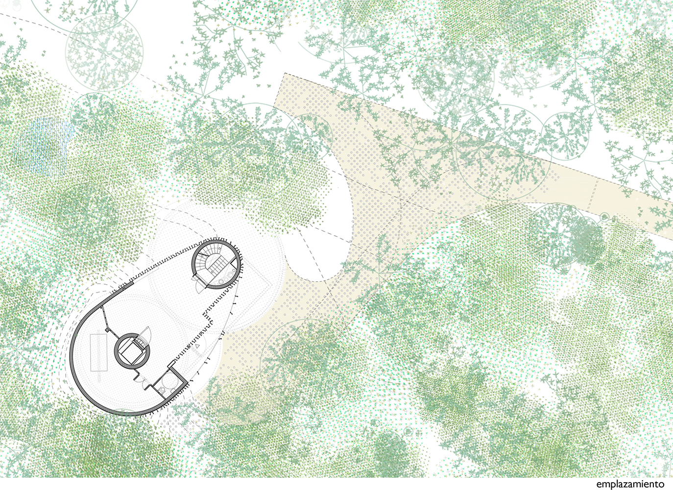 Situat într-o pădure listată ca sit Natura 2000 (rețeaua de zone naturale protejate a Uniunii Europene), acest proiect, realizat în colaborare cu o echipă de naturaliști și ornitologi, integrează în mod firesc în contextul verde două volume principale – primul servind drept adăpost pentru păsări și mamifere, iar celălalt, un rezervor de apă potabilă cu o capacitate de 1 000 de metri cubi.