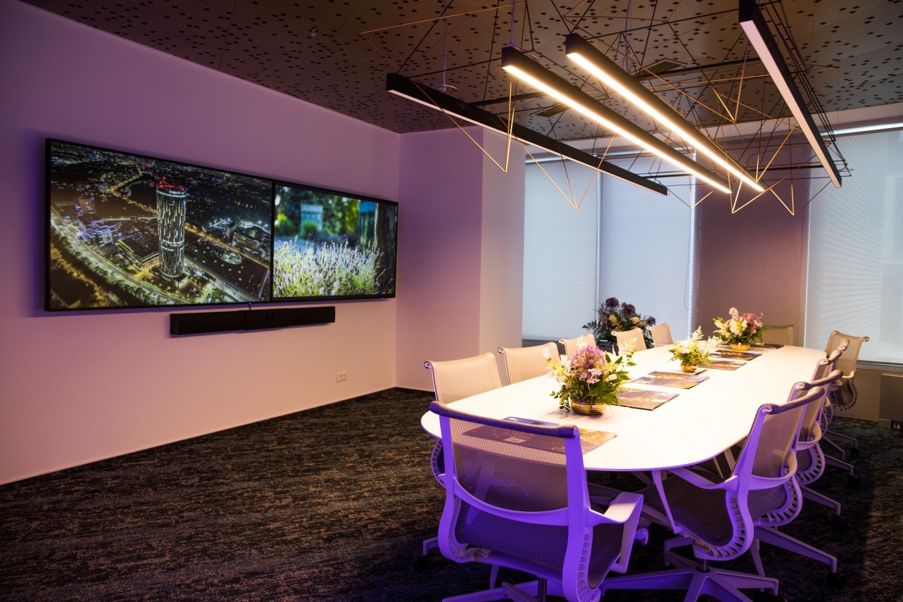 Cu o suprafață de aproximativ 450 de metri pătrați, SkyHub Events Centre dispune de trei zone de evenimente: amfiteatrul multifuncțional care oferă 55 de locuri și un ecran de proiecție cu tehnologie edge; o zonă de cocktail și lounge, cu bar; și o sală de ședințe de 12 locuri, echipată cu două ecrane cu rezoluție 4K.